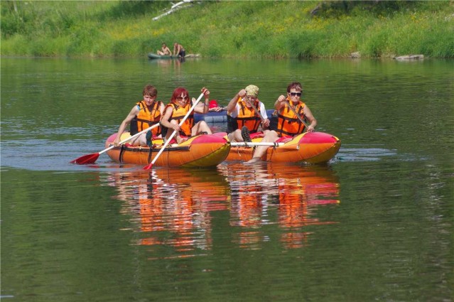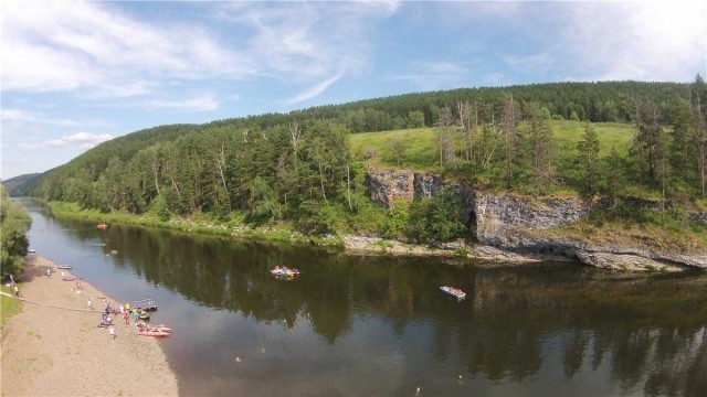 Место, где начались соревнования по «Спортивному туризму» на водной дистанции необыкновенно красивое. На противоположном берегу реки возвышается отвесная скала, которая постепенно переходит в лесок, и рассеивается зелеными холмами. Каждый, кто приходит на берег не может сдержать своего восторга: «Вы посмотрите, как здесь красиво!». И, конечно, сразу всем хочется запечатлеть себя на фоне этого великолепия.